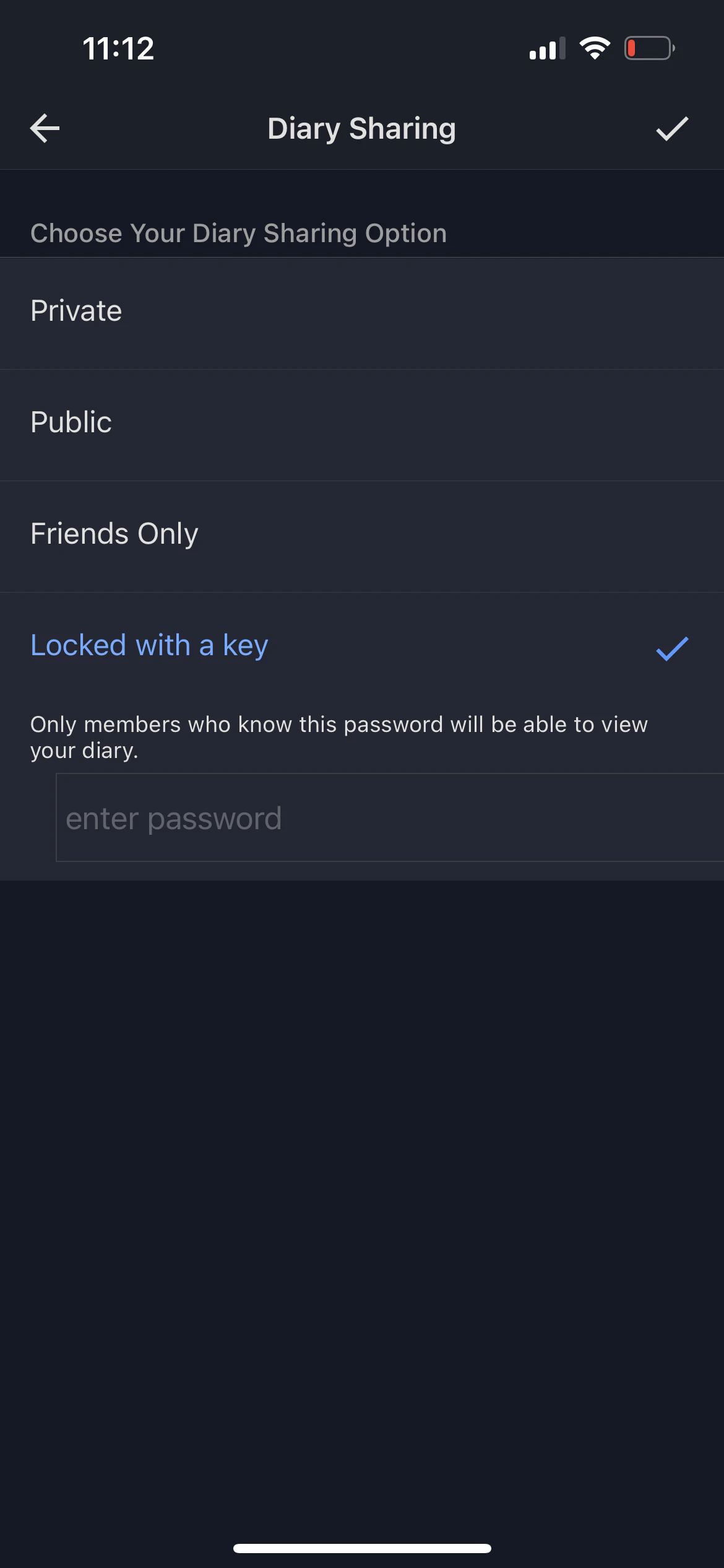 • Go to your diary settings and click locked with key.